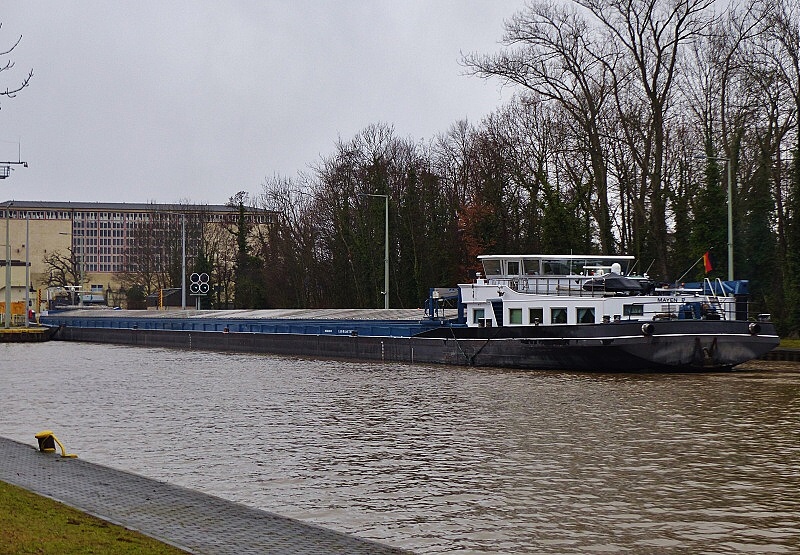 am 17.12.2017 zu Tal bei der Einfahrt in die Schleuse Griesheim und leichtem Regen: