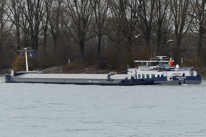 am 15.02.2024 auf dem Rhein zu Tal in Höhe Worms: