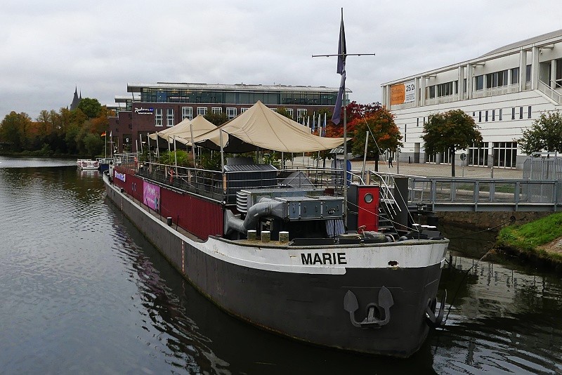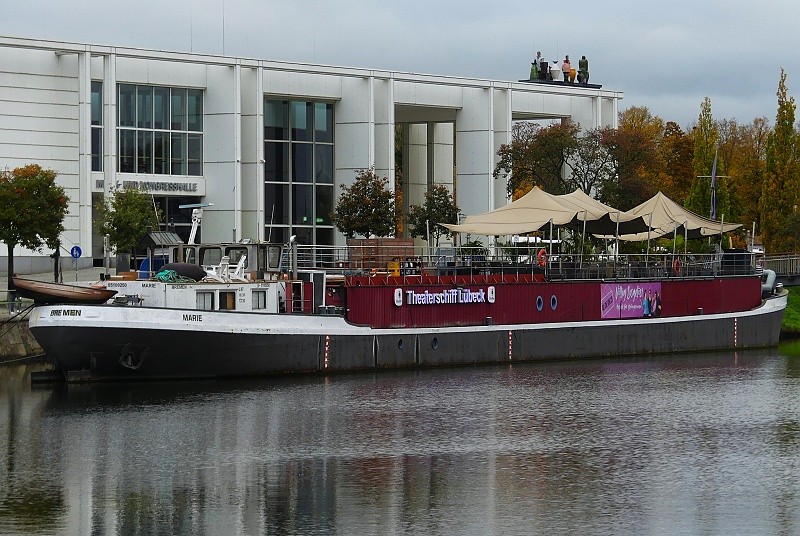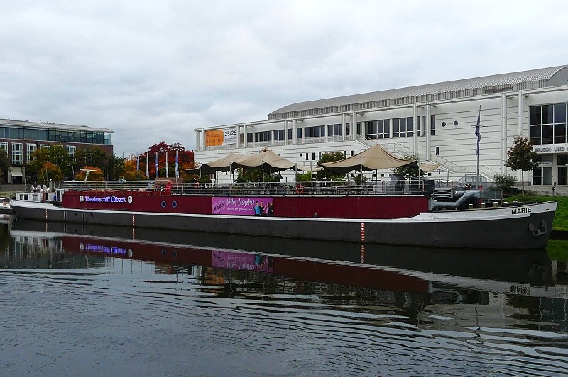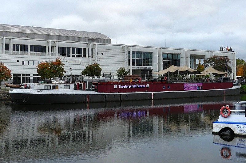 Theaterschiff MARIE Publiziert 14. Oktober 2025 | Von Waterclerk Theaterschiff MARIE (ENI 05100250, Germany, Länge 67 m, Bj. 1956) am 14.10.2025 an seinem Liegeplatz im Holstenhafen vor der Musik- und Kongresshalle: