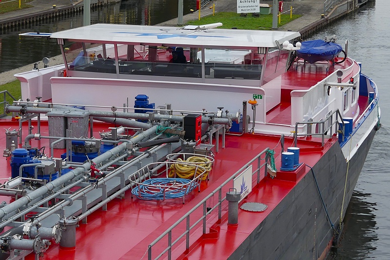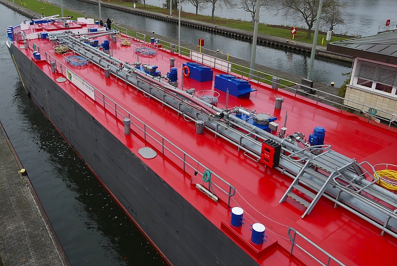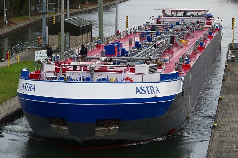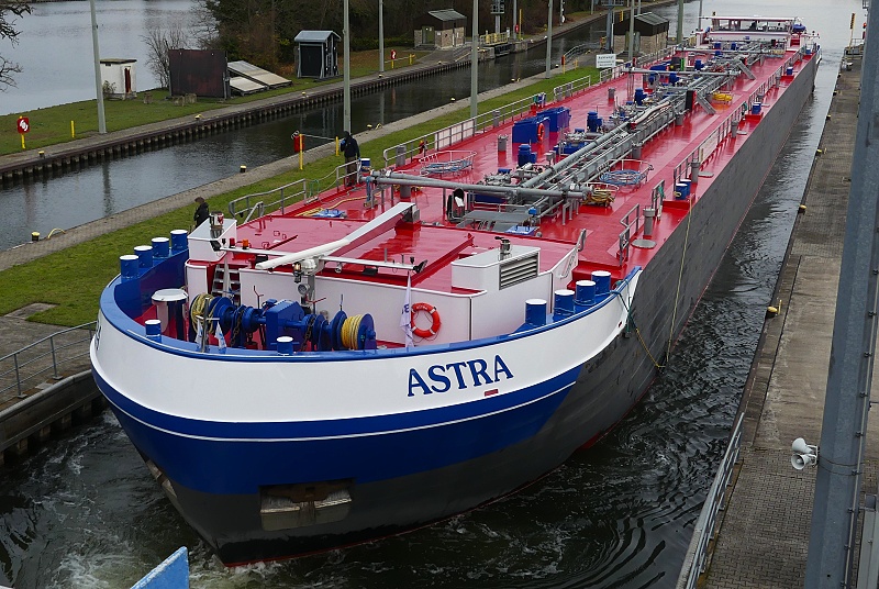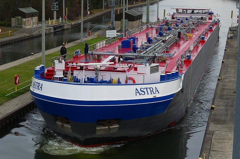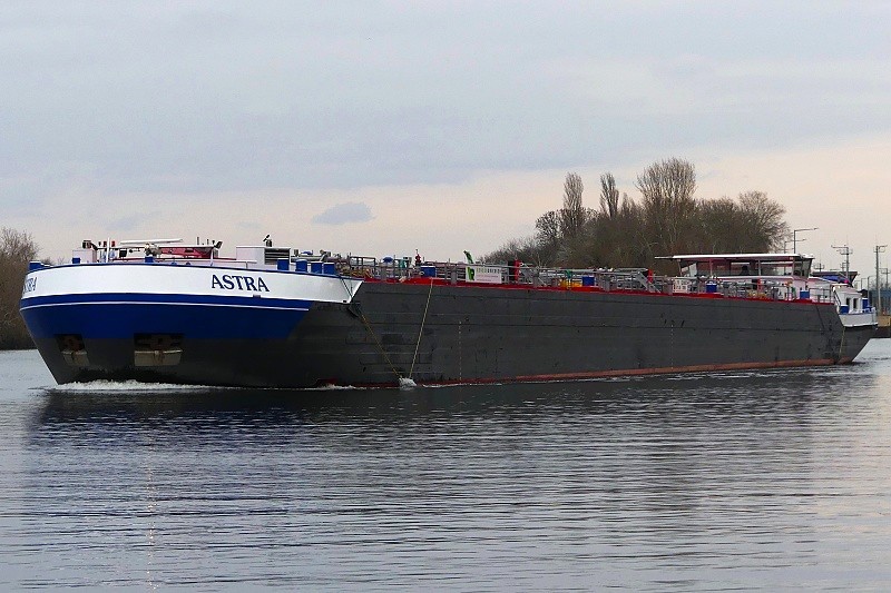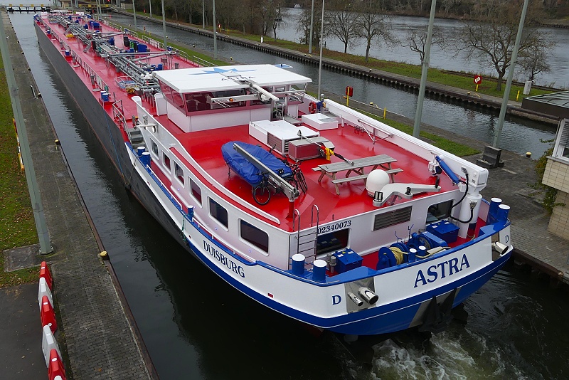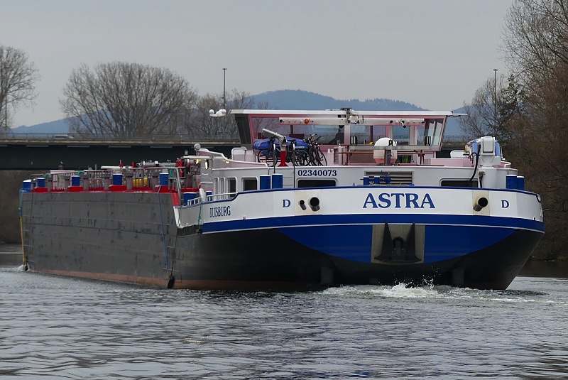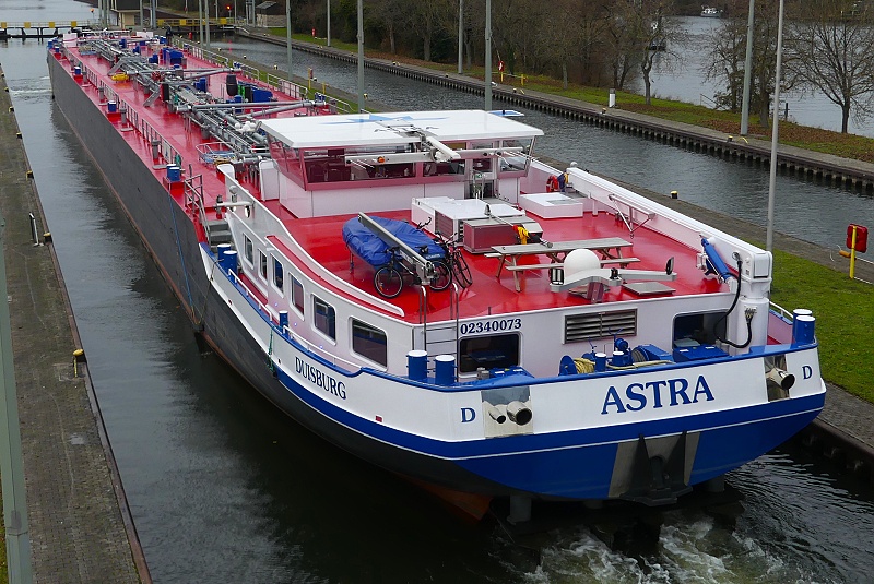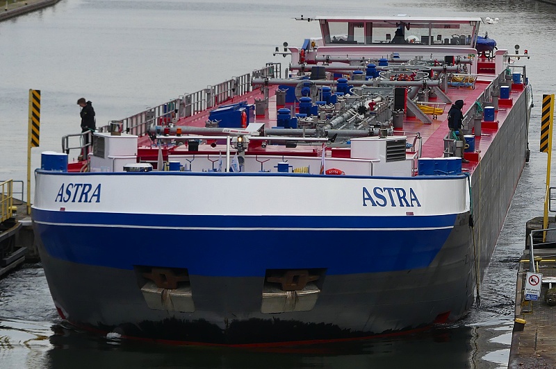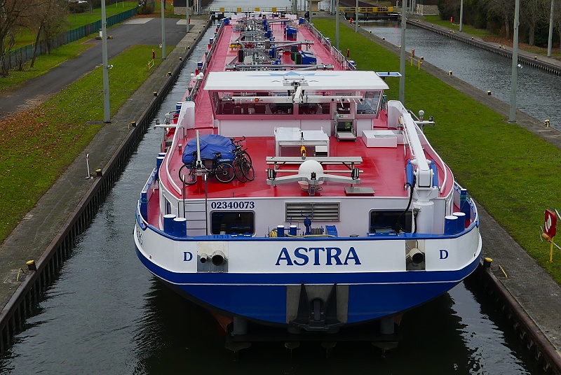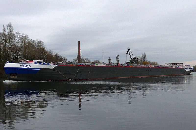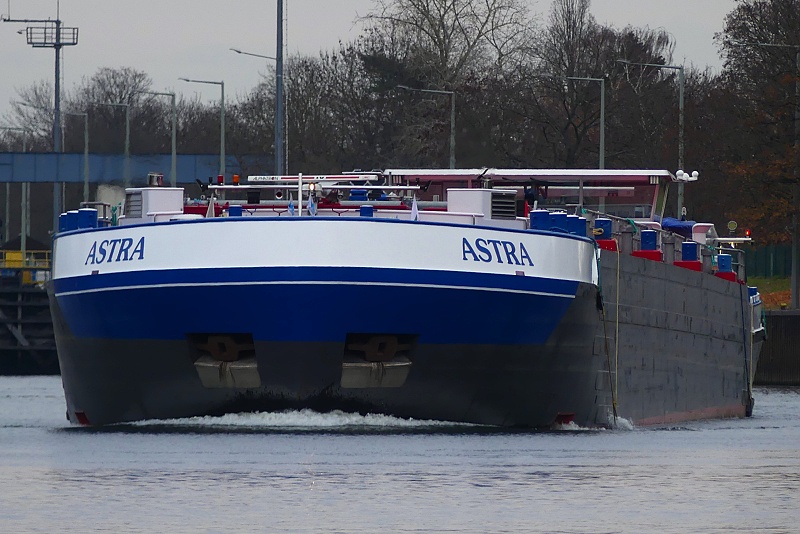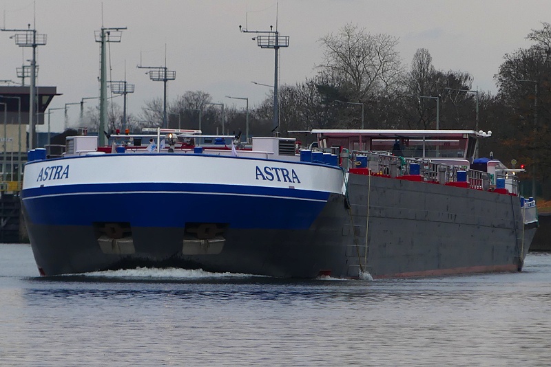 TMS ASTRA Publiziert 27. November 2025 | Von Waterclerk TMS ASTRA (ENI 02340073, Germany, Länge 110 m, Bj. 2023) am 27.11.2025 zu Tal bei der Einfahrt in die Schleuse Griesheim…: …und später bei der Weiterfahrt in Höhe Schwanheim: