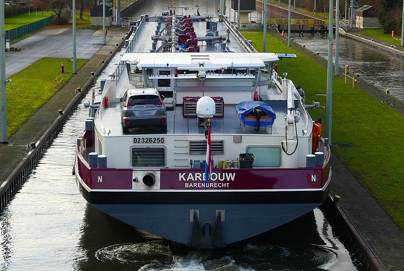 …und etwas später zu Tal bei der Einfahrt in die Schleuse Griesheim..: