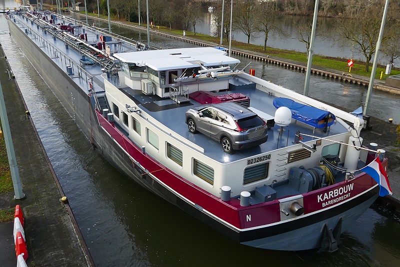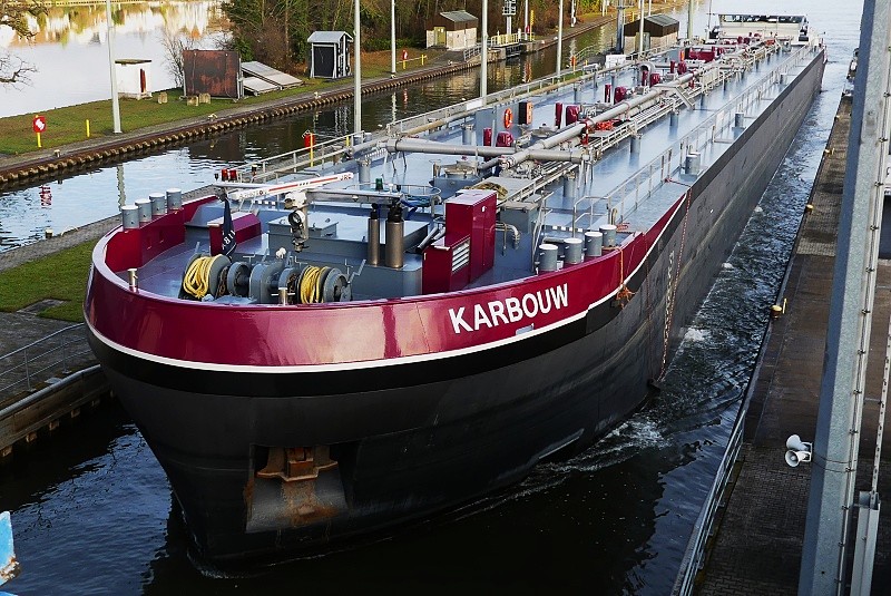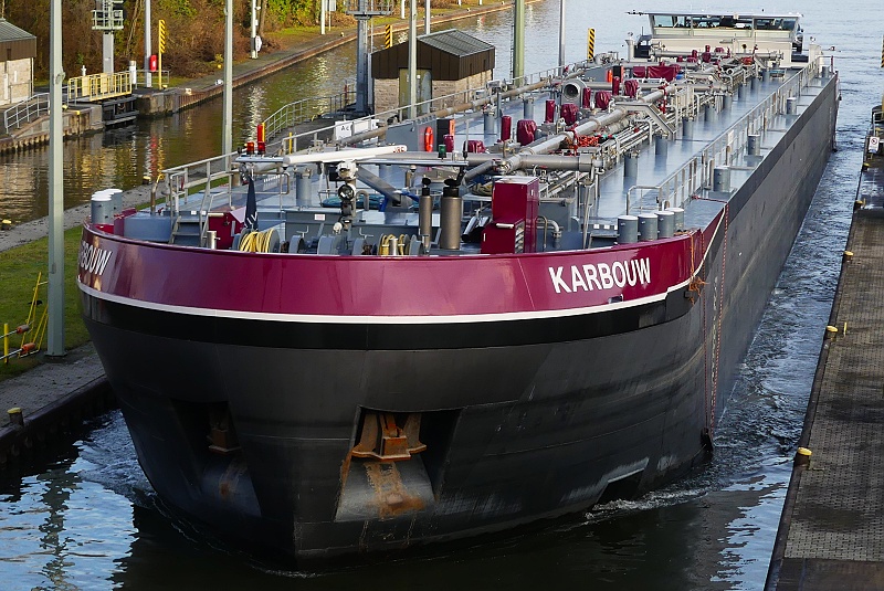 …und etwas später zu Tal bei der Einfahrt in die Schleuse Griesheim..: