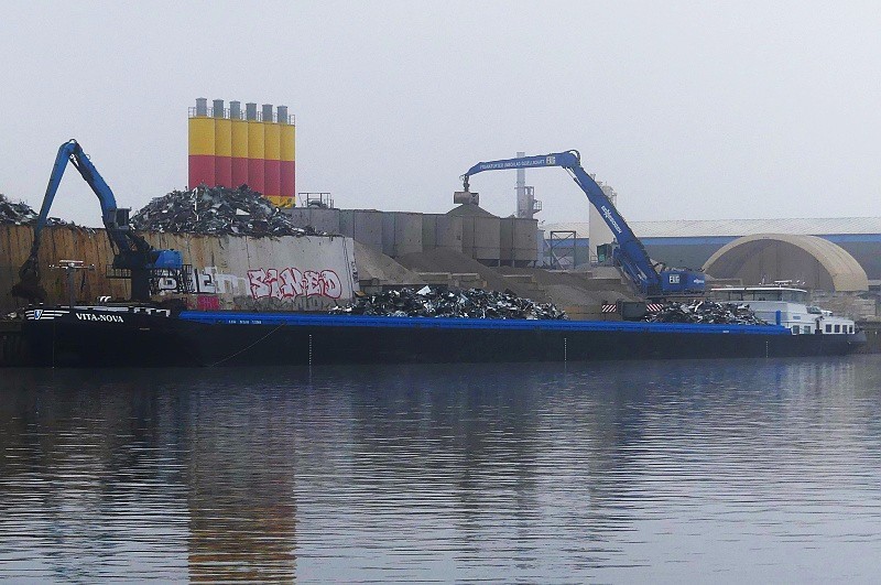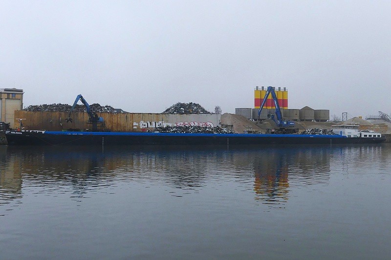 am 17.12.2025 unter Beladung einer Partie Schrott im Gutleuthafen: