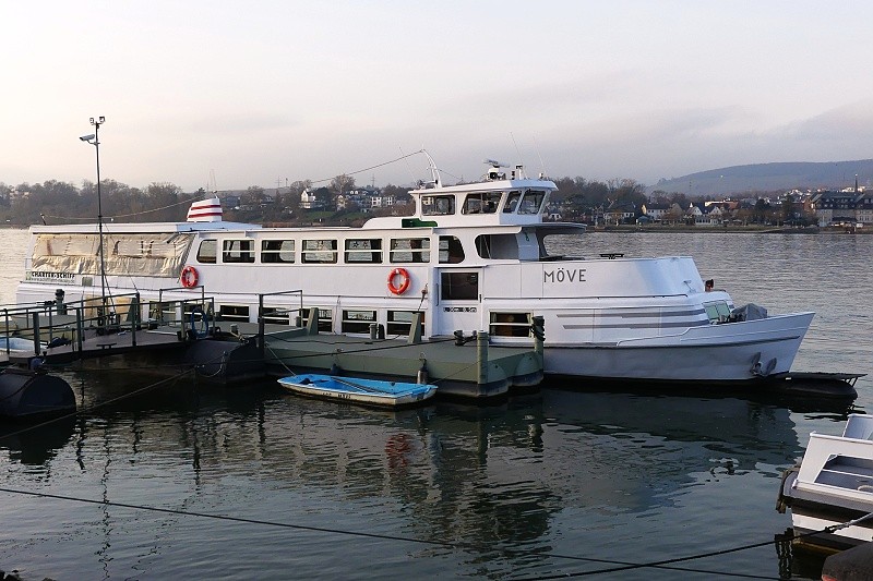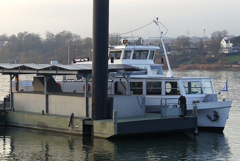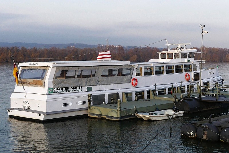 der Nikolay Personen Schifffahrt am 18.12.2025 an seinem Liegeplatz in Budenheim am Rhein…der Betrieb der Personen-und Fahrradfähren LIBELLE und PHILIPP wurde 2023 wegen Personalmangel eingestellt: