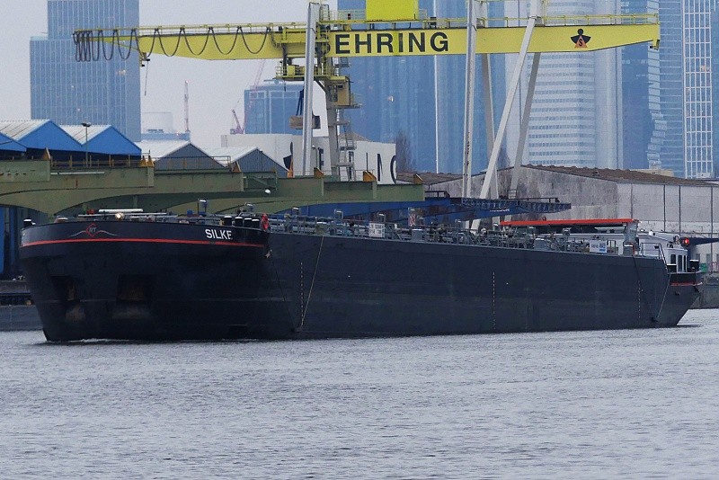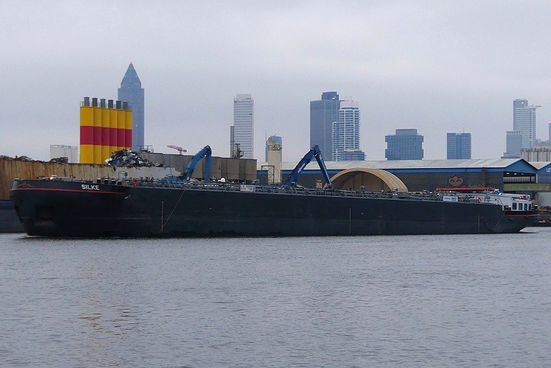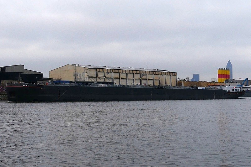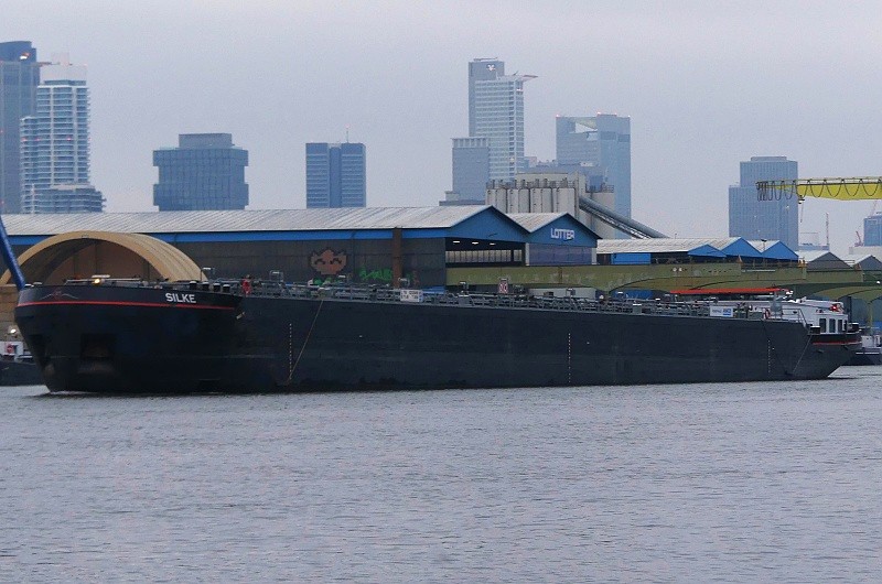 TMS SILKE Publiziert 17. Januar 2026 | Von Waterclerk TMS SILKE (ENI 02330490, Netherlands, Länge 110 m, Bj. 2008) am 17.01.2026 zu Tal in Höhe Niederräder Eisenbahnbrücke: