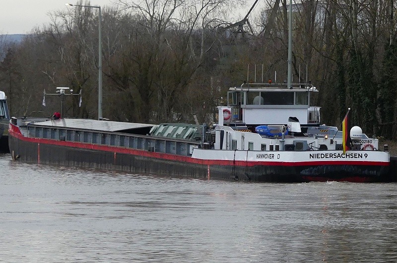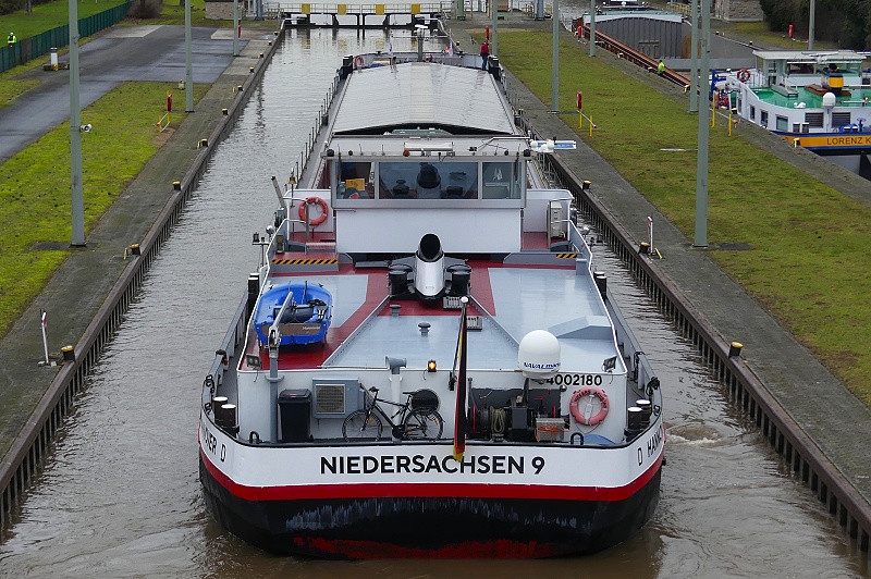 am 24.02.2026 zu Berg in Warteposition im Unterwasser der Schleuse Griesheim: