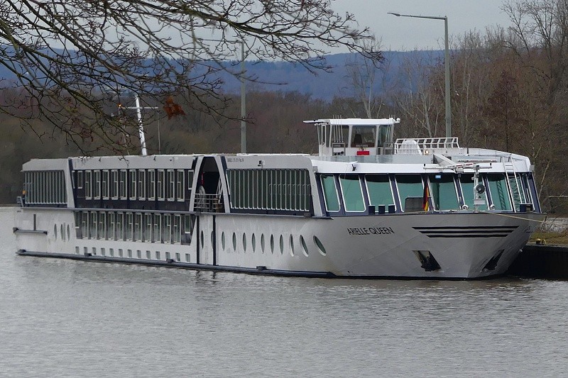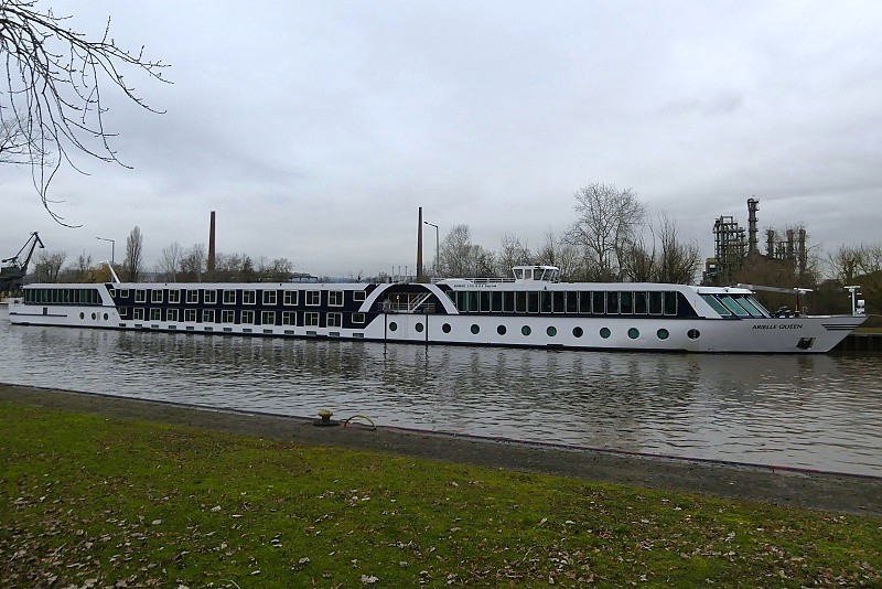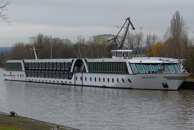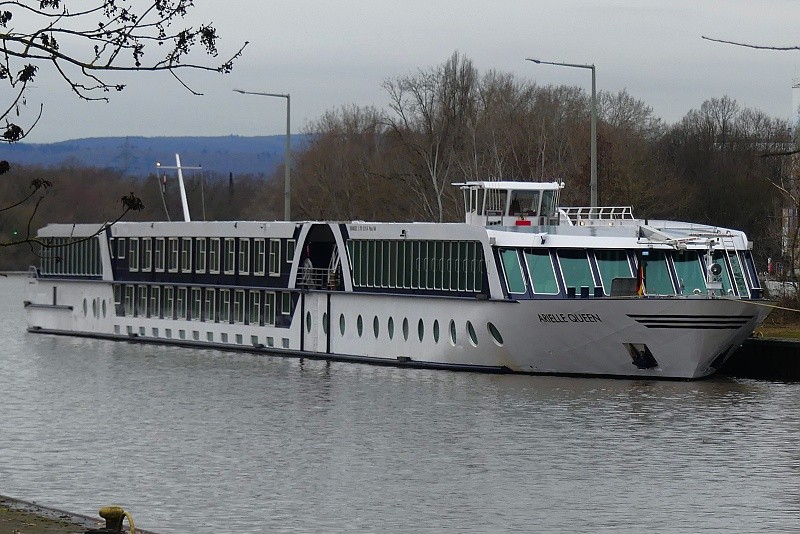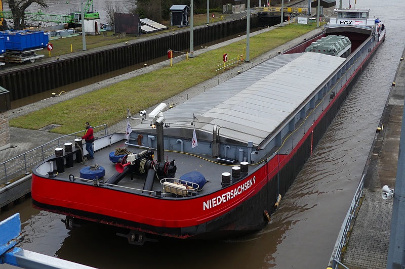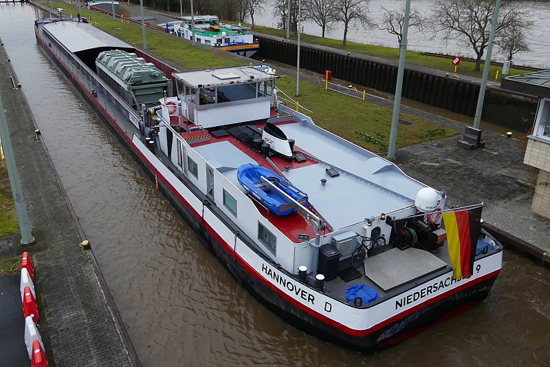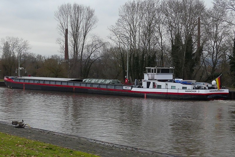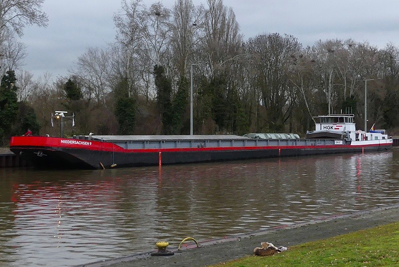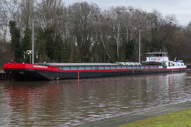 am 24.02.2026 zu Berg in Warteposition im Unterwasser der Schleuse Griesheim: