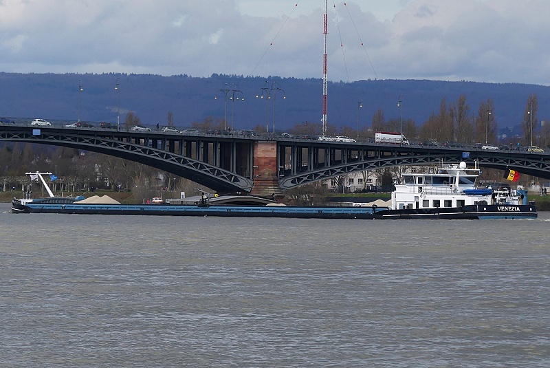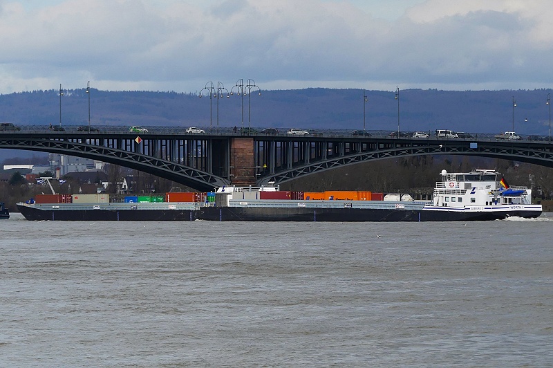 am 28.02.2026 auf dem Rhein zu Tal in Höhe Theodor-Heuss-Brücke: