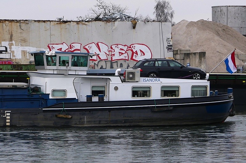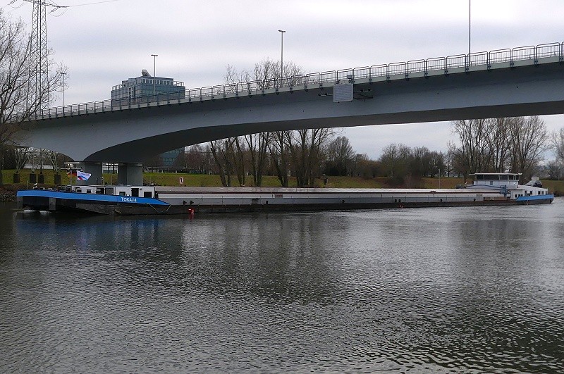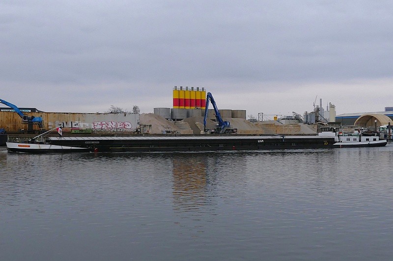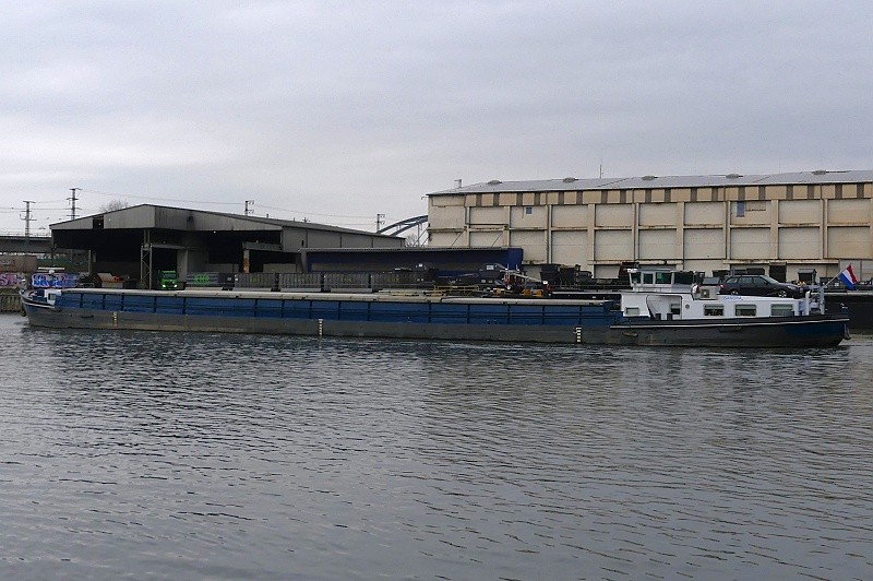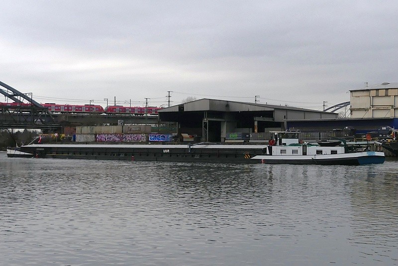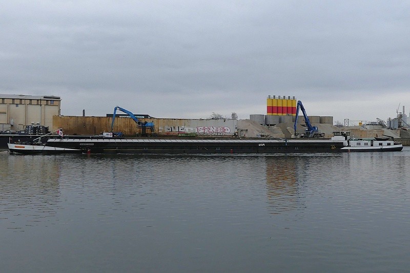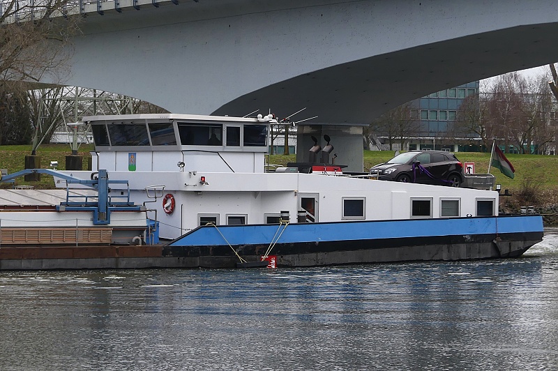 (ENI 04503730, Hungary, Länge 110 m, Bj. 1993, Hochzeit Achterschiff von ALCHEMIST LEVERKUSEN und rumänischem Schubleichter)