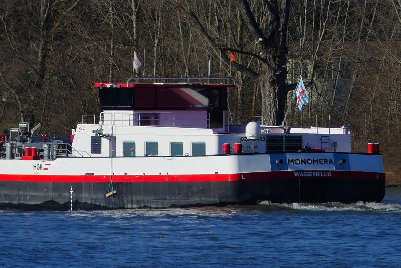 TMS MONOMERA Publiziert 2. März 2026 | Von Waterclerk TMS MONOMERA (ENI 02340453, Luxembourg, Länge 100 m, Bj. 2024) am 02.03.2026 auf dem Rhein zu Tal in Höhe Kaiserbrücke in Mainz-Neustadt: