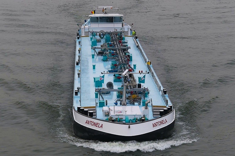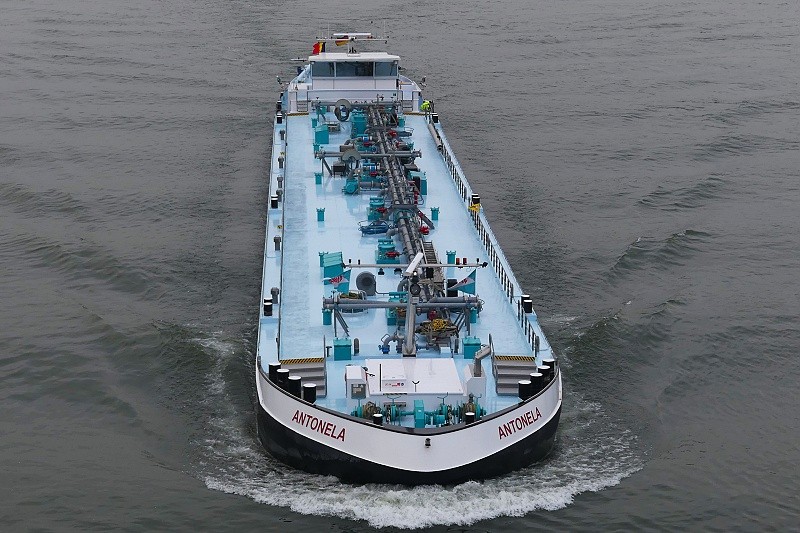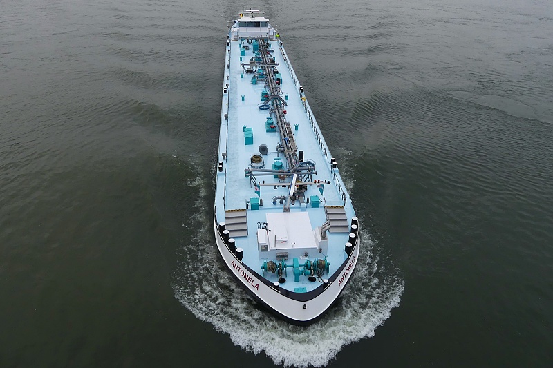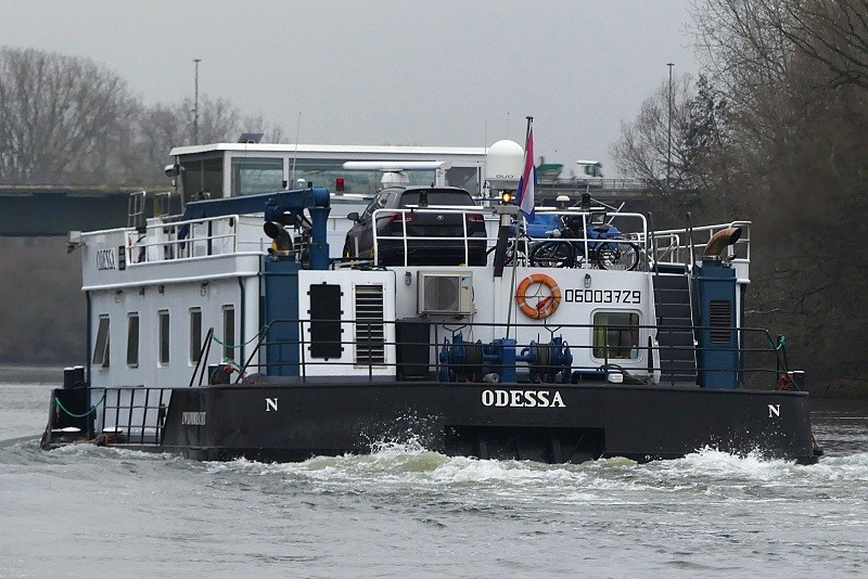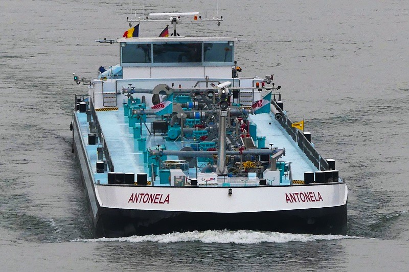 am 28.11.2025 zu Berg in Höhe Sindlingen kurz vorm Anlegen im Industriepark Höchst: