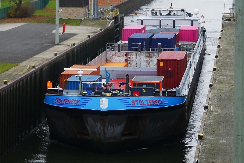 am 04.12.2025 zu Berg bei Ein- und Ausfahrt aus der Schleuse Griesheim: