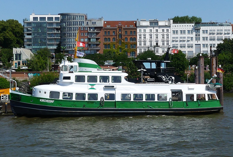 der HADAG Seetouristik und Fährdienst Aktiengesellschaft am 02.07.2025 in Ruhestellung am Anleger in Höhe Altona Fischmarkt…bis 2001 im Linien-Einsatz als Personenfähre von den Landungsbrücken nach Finkenwerder, danach auf Hafenrundfahrten unterwegs: