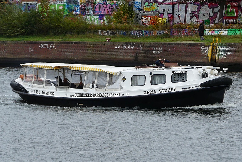 der Stühff Lübecker Barkassenfahrt auf Hafenrundfahrt in Höhe Klughafen am 24.10.2025: