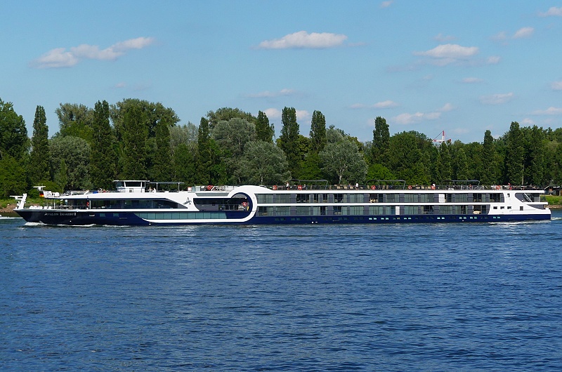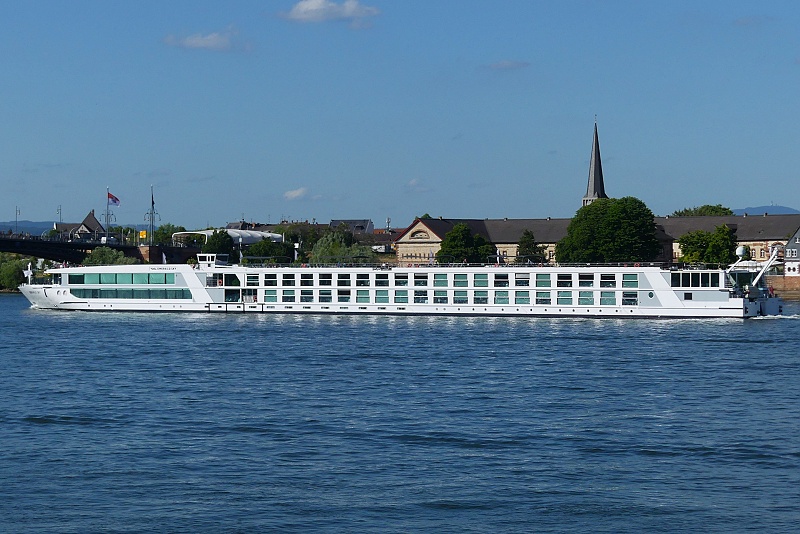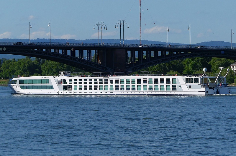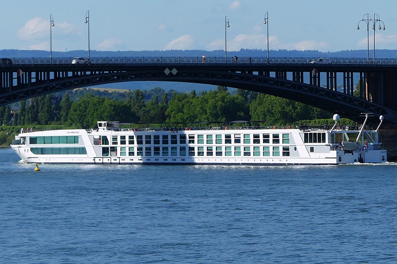 der Bingen-Rüdesheimer Fähr- und Schifffahrtsgesellschaft e.G. am 30.05.2025 zu Tal auf einer Eventfahrt in Höhe Theodor-Heuss-Brücke in Mainz:
