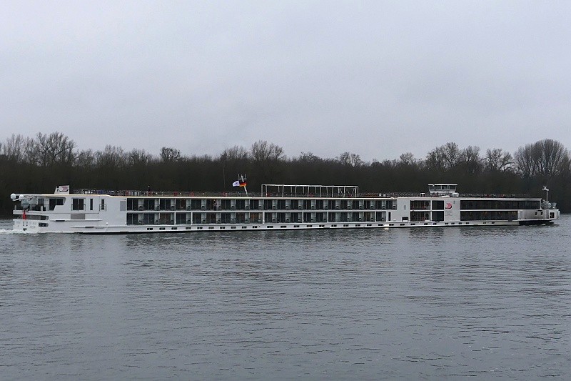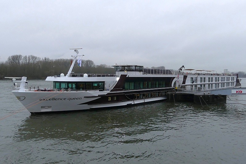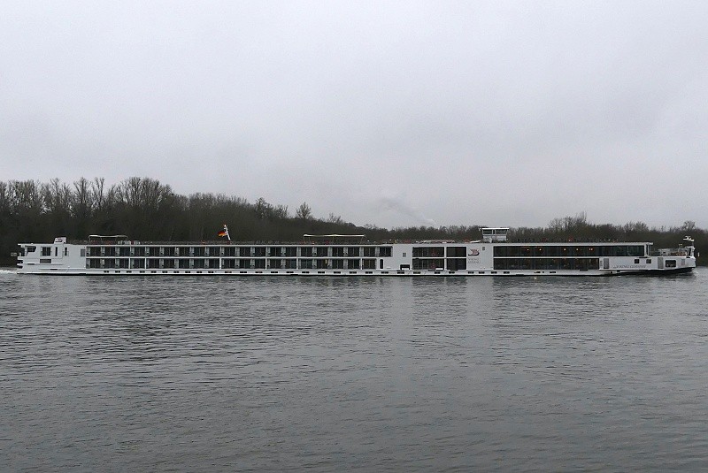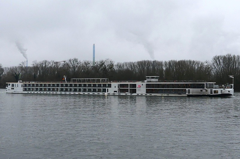 der Personenschifffahrt Nikolay am 18.12.2025 an ihrem Liegeplatz in Budenheim am Rhein: