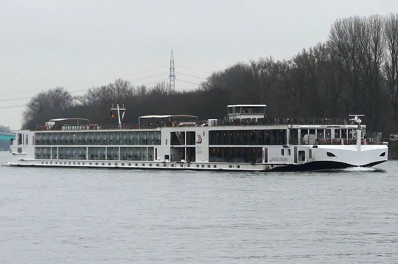 der Nikolay Personen Schifffahrt am 18.12.2025 an ihrem Liegeplatz in Budenheim am Rhein: