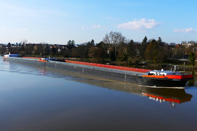 am 24.02.2026 zu Berg in Warteposition im Unterwasser der Schleuse Griesheim: