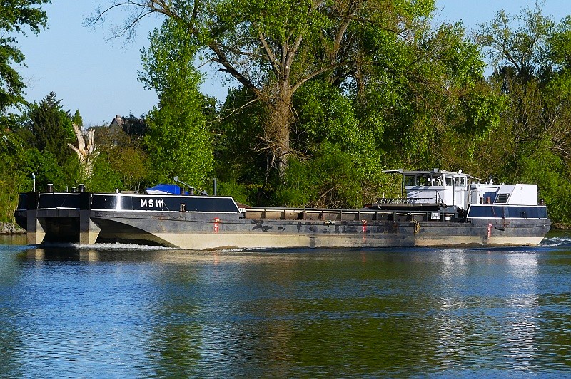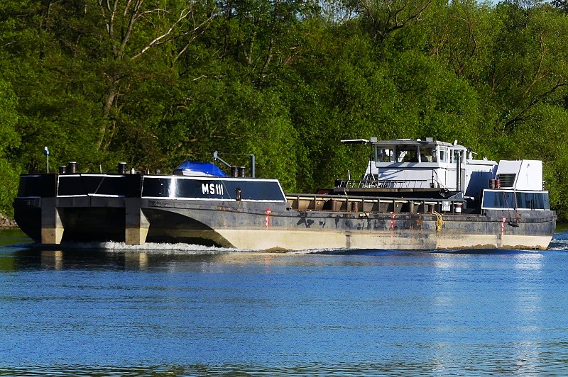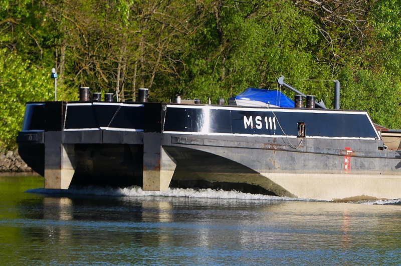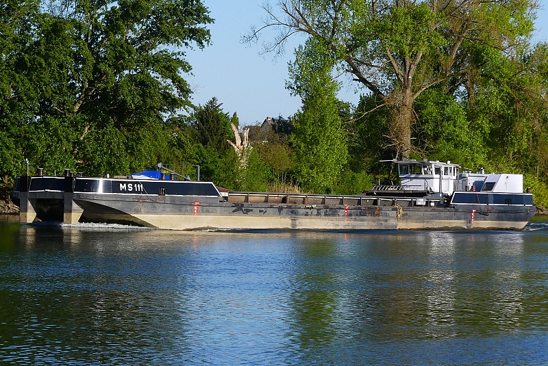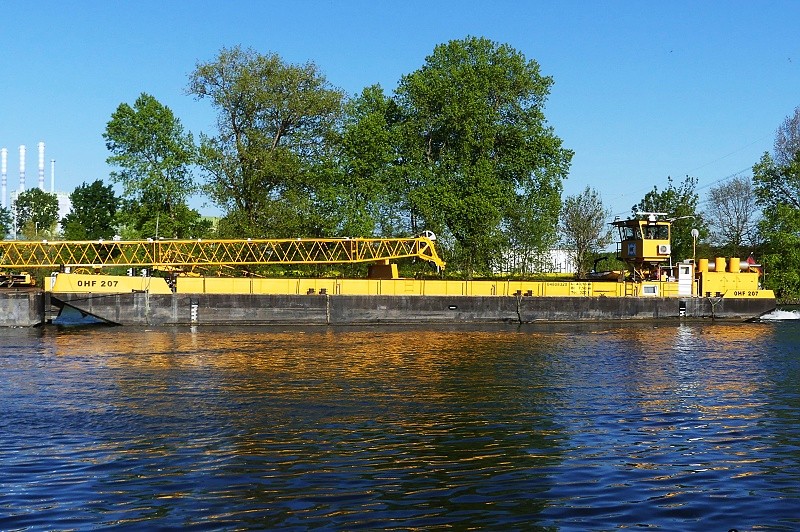 der OHF Hafen- und Flussbau GmbH am 22.04.2026 kurz vorm Anlegen am Sindlinger Mainufer: