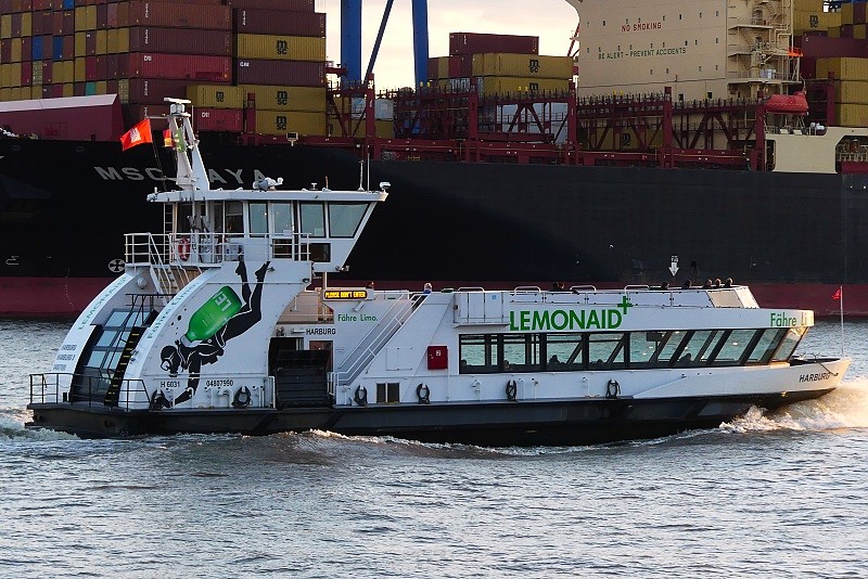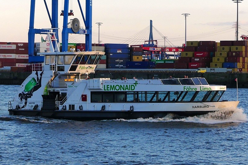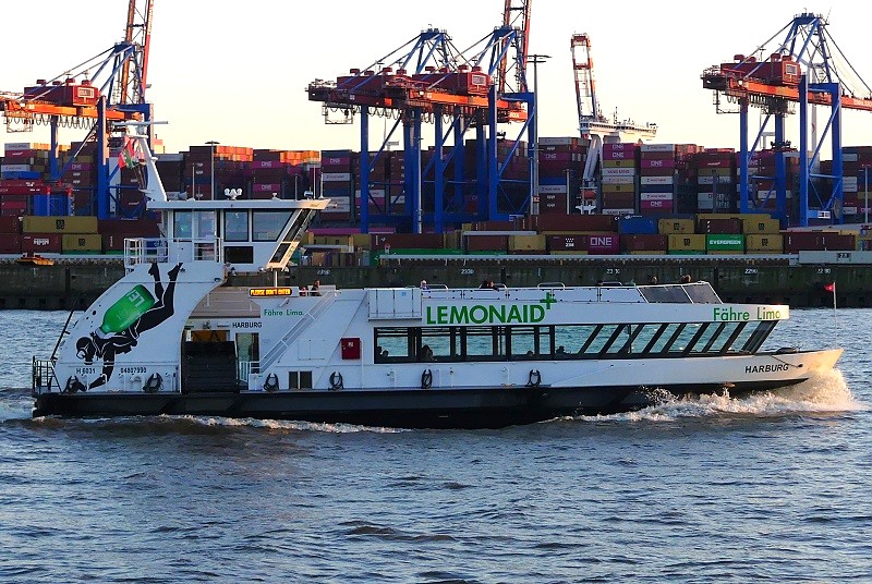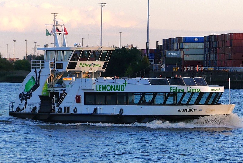 der HADAG Seetouristik und Fährdienst Aktiengesellschaft am 30.09.2025 auf Linie 66 nach Finkenwerder in Höhe Terminal Burchardkai: